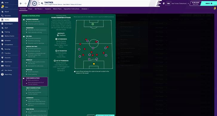 Não use isso se: Tiki-Taka precisa de conhecimento da tática e coesão da equipe para trabalhar, além da habilidade técnica. Se você está entrando em um par de novos jogadores, Tiki-Taka será difícil, mas se você mudar a tática para algo mais simples, o resto do time estará fora de controle. Como você gerencia novas entradas para um esquadrão Tiki-Taka? Tempo e paciência parecem ser a única resposta.