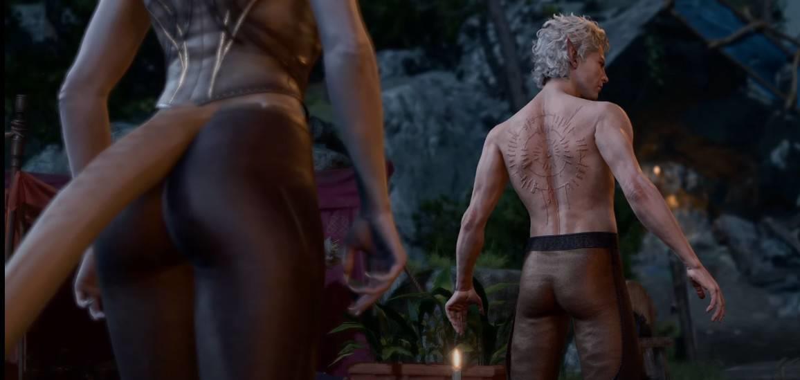 Astarion se tomu nejprve bude smát, ale zjištění o jizvách spustí další scénu, kde se bude snažit přijít na to, co zobrazují. Pokusí se na to přijít tak, že se dotkne jeho zad; můžete mu nabídnout pomoc a přečíst si, co se tam píše.