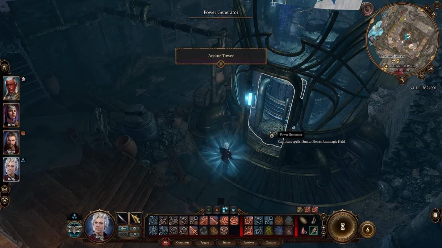 Inde i kælderen kan du se strømgenerator. Brug Sussur Bloom-blomsterne på strømgeneratoren. Dette vil låse Arcane Tower op og aktivere det, hvilket giver parten adgang til det.