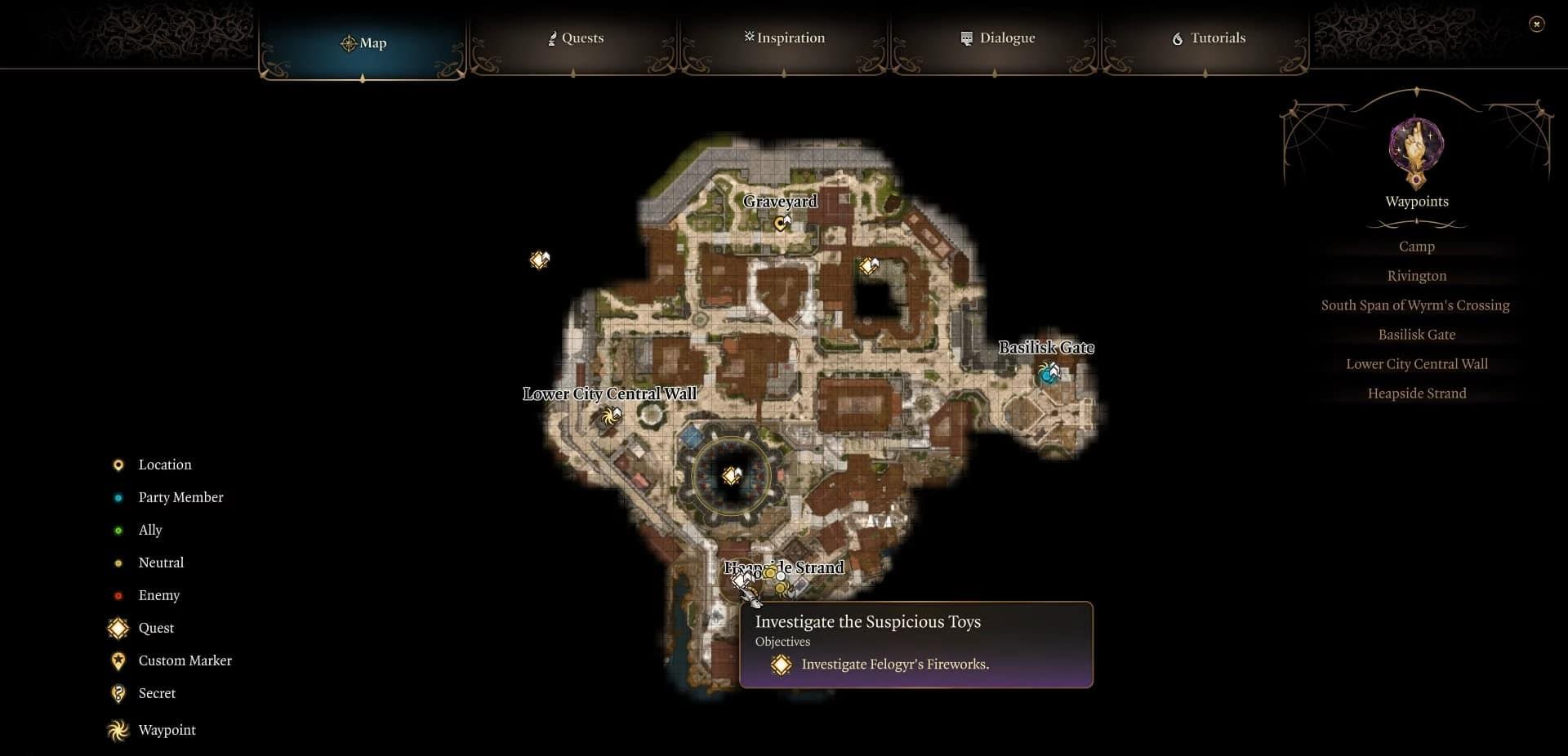 Jetzt müssen Sie Felogyrs Feuerwerk finden, um die Quest „Untersuchen Sie die verdächtigen Spielzeuge“ in Baldur’s Gate 3 abzuschließen. Es befindet sich im Unterstadtgebiet der Baldur’s Gate-Region und südlich der Zauberkisten (X: 20, Y: -126). Sie finden den Heapside Strand-Wegpunkt auch in der Nähe von Felogyrs Feuerwerksladen.