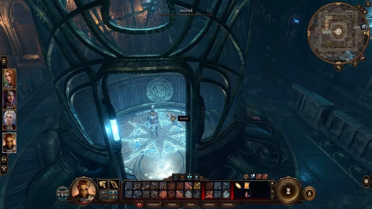Dadurch werden die Türme deaktiviert und Sie können die Umgebung des Arkanen Turms leichter erkunden. Dann nehmen Sie die Treppe. Sie werden Sie zum Aufzug führen. Mit dem Aufzug gelangen Sie in die dritte Etage.
