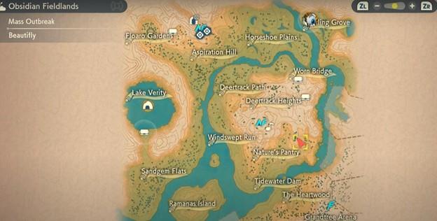 Encontrarás a Leif, Duna y Tarush discutiendo sobre qué forma de Burmy es la verdadera. Deberá atrapar los tres tipos de Burmy (Green Burmy, Yellow Burmy y Pink Burmy) para resolver el debate. Green Burmy caerá de los árboles que se sacuden en la despensa de la naturaleza de Obsidian Fieldlands como se muestra en la imagen a continuación.