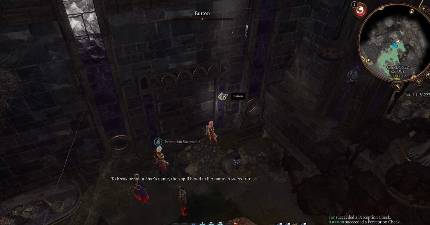 Végezzen észlelési ellenőrzést a szoba bal sarkában a csontváz mellett, hogy felfedjen egy titkot Gomb a falon. Ügyeljen arra, hogy többször is mentsd el a játékodat, mert a következő sorozat halálos.