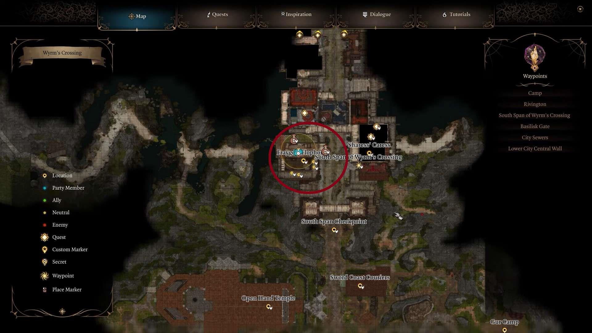 Der Blumenschlüssel in BG3 kann nur für einen bestimmten verschlossenen Kleiderschrank im dritten Stock von verwendet werden Fraygos Absteige. Dieser Ort liegt nördlich des Open-Hand-Tempels und ist auf der Karte markiert. Sobald Sie das Haus erreicht haben, nutzen Sie einfach die Eingangstür, um es zu betreten. Steigen Sie die Treppe nach rechts hinauf, um in den zweiten Stock zu gelangen.