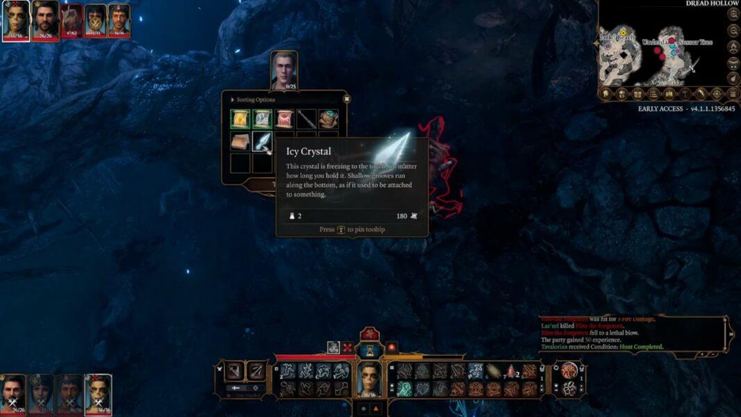 Als je dicht bij Filro bent, ga dan op je hurken zitten, benader hem en steel het Icy Crystal uit zijn inventaris. Je kunt snel in BG3 naar veiligheid reizen of terugsluipen.