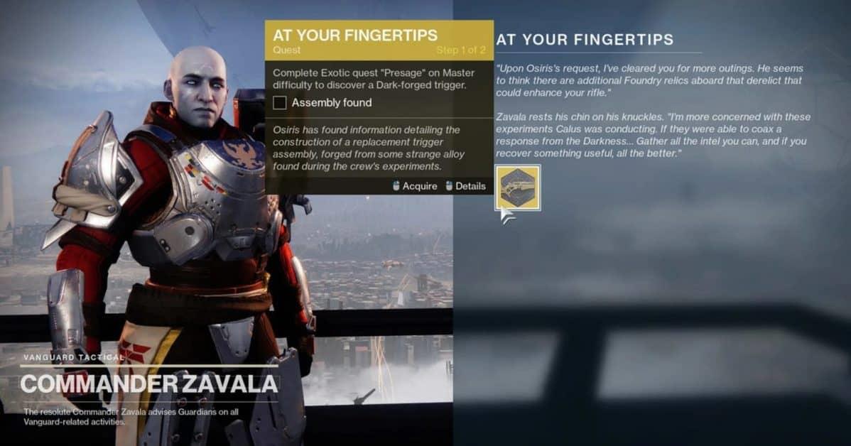 Aby rozpocząć to egzotyczne zadanie, musisz najpierw ukończyć egzotyczne zadanie Presage z zeszłego tygodnia.