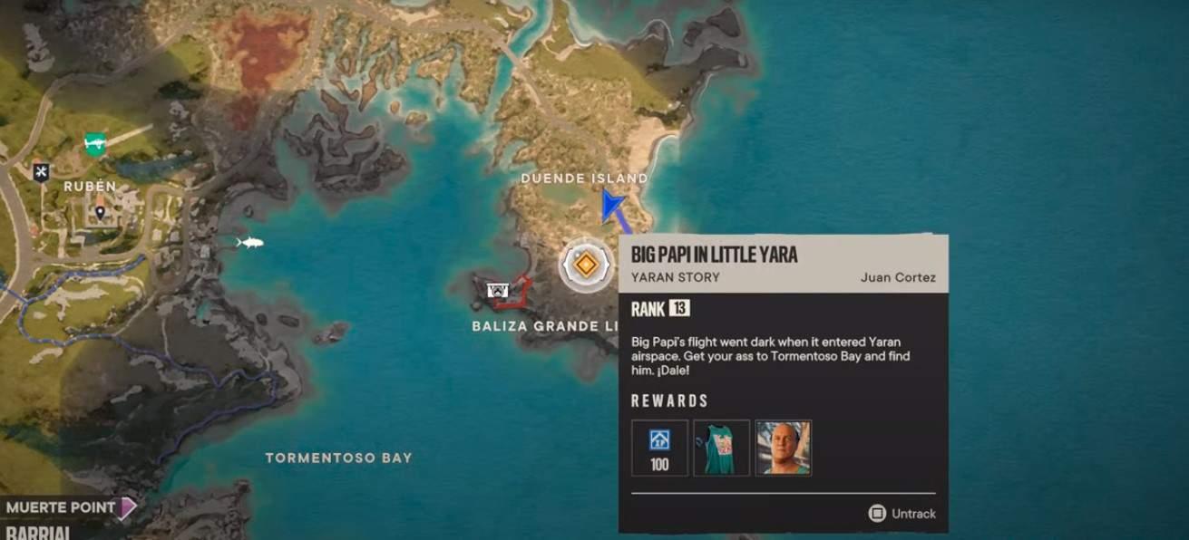 Udaj się na wyspę Duende, aby ukończyć Big Papi w Little Yara Yaran Story. Powyższy obraz mapy wskazuje dokładną lokalizację. Kiedy gracze dotrą na wyspę, automatycznie otrzymają telefon.