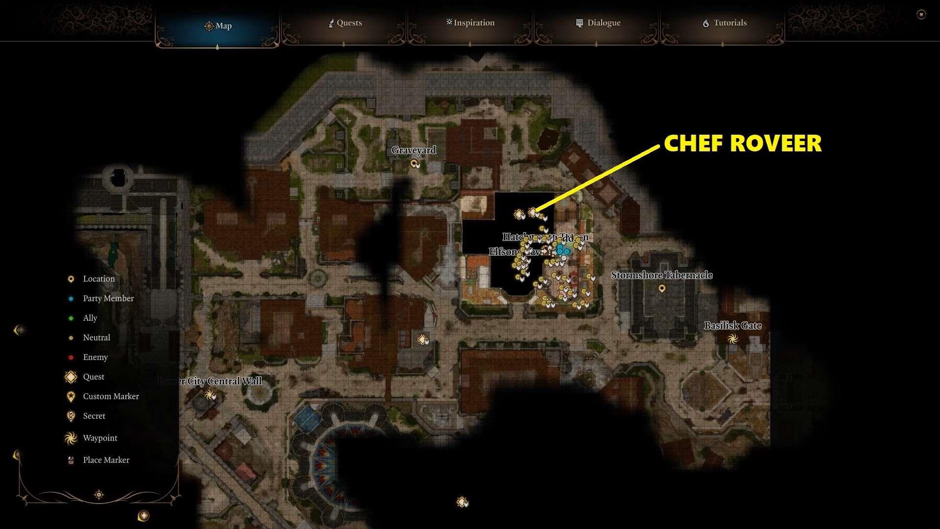 Chef Roveer to jedno z nazwisk wymienionych na liście Bhaalistów wraz z ich lokalizacją. On jest wewnątrz kuchnia w tawernie Elf Song. Zejdź na dół i wejdź do kuchni o godz (X: 64, Y: 10). Porozmawiaj z nim i wybierz tylko następującą opcję dialogową.