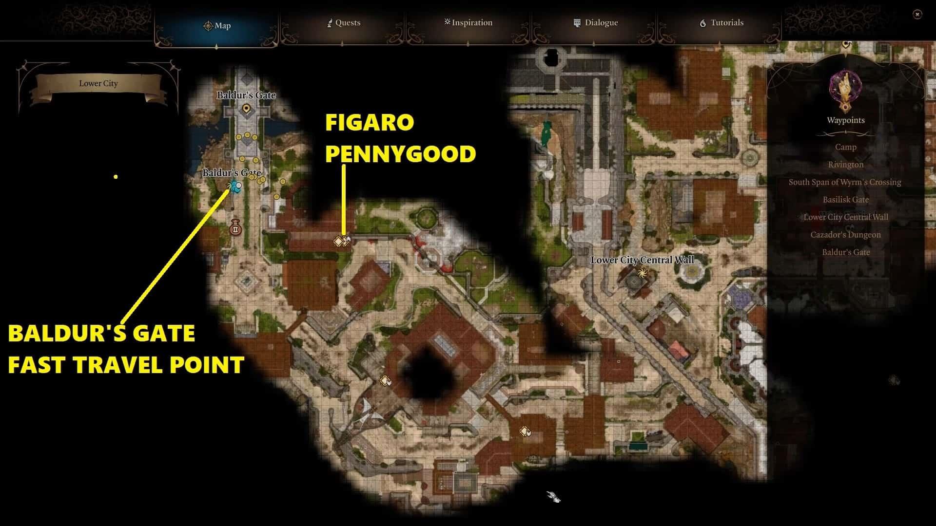 Kolejnym celem na liście, który możesz zapisać jest Figaro Pennygood. Jest dostępny w Butik Facemakera obszar, na wschód od punktu szybkiej podróży Baldur’s Gate. Po wejściu do butiku skorzystaj z dużych podwójnych drzwi w prawym górnym rogu.Rozpocznie się scenka przerywnikowa, w której Dolor grozi Figaro Pennygoodowi, a Gauntlet Devalla leży na podłodze obezwładniony.