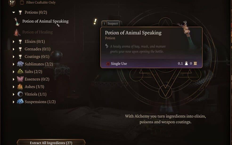 Grasz klasą taką jak Mnich czy Łotrzyk? Cóż, nie martw się, ponieważ nadal możesz rozmawiać ze zwierzętami w BG3. Wszystko, co musisz zrobić, to zdobyć składniki i stworzyć eliksir mowy zwierząt. Podobnie jak zaklęcie, działanie mikstury trwa do następnego Długiego Odpoczynku.