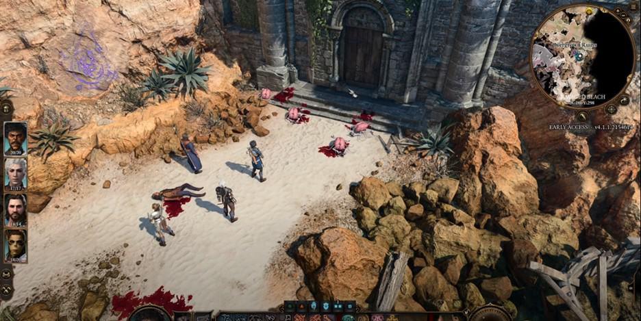 Jeśli nie miałeś szczęścia z wejściem do plaży, możesz udać się na północ od Zarośniętych Ruin, aby dotrzeć do drugiego wejścia.Natkniesz się tu na grupę Bandytów, nad którymi możesz popracować swoimi umiejętnościami (Zastraszanie, Perswazja lub Oszustwo). Jeśli sytuacja się pogorszy, możesz ich zabić, aby przejść dalej w Baldur’s Gate 3.