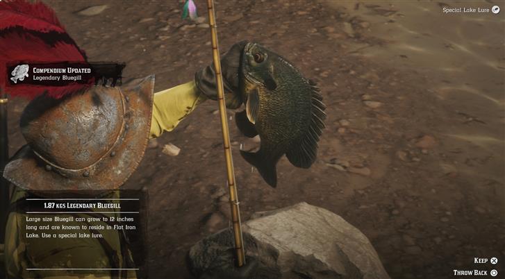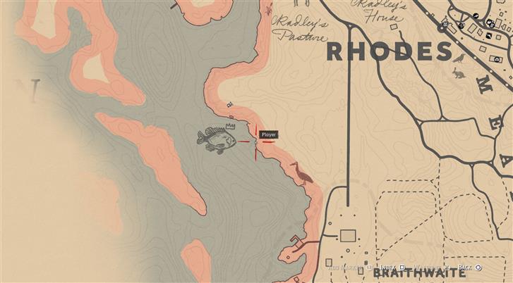 Südlich von Gill’s Pier finden Sie diesen letzten Fisch, einen dürren Bluegill. Auch hier müssen Sie einen Hang hinunterkrabbeln, um dorthin zu gelangen, wo er sich befindet. Achten Sie jedoch darauf, dass Sie die Blasen dort werfen, wo sie sind, und Sie sollten keine Probleme haben, diese Zange zu fangen.