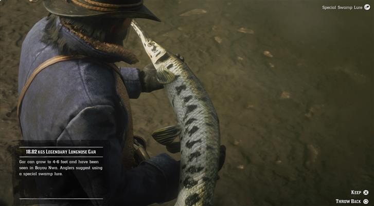 Nachdem Sie Ihre Köder im nahe gelegenen Köderladen abgeholt haben, sollte dieser Fisch auf Ihrer Tagesordnung stehen, da er sich im Sumpfland befindet. Es ist wirklich nicht so groß, aber das Wichtigste, worauf Sie achten müssen, sind die böswilligen amerikanischen Alligatoren, die um Ihre Knöchel lauern und bereit sind, Sie hereinzuziehen. Achten Sie darauf, alle in der Nähe befindlichen Bestien zu töten und zu häuten, damit Sie keinen Schock bekommen ruinieren Sie Ihre harte Arbeit.