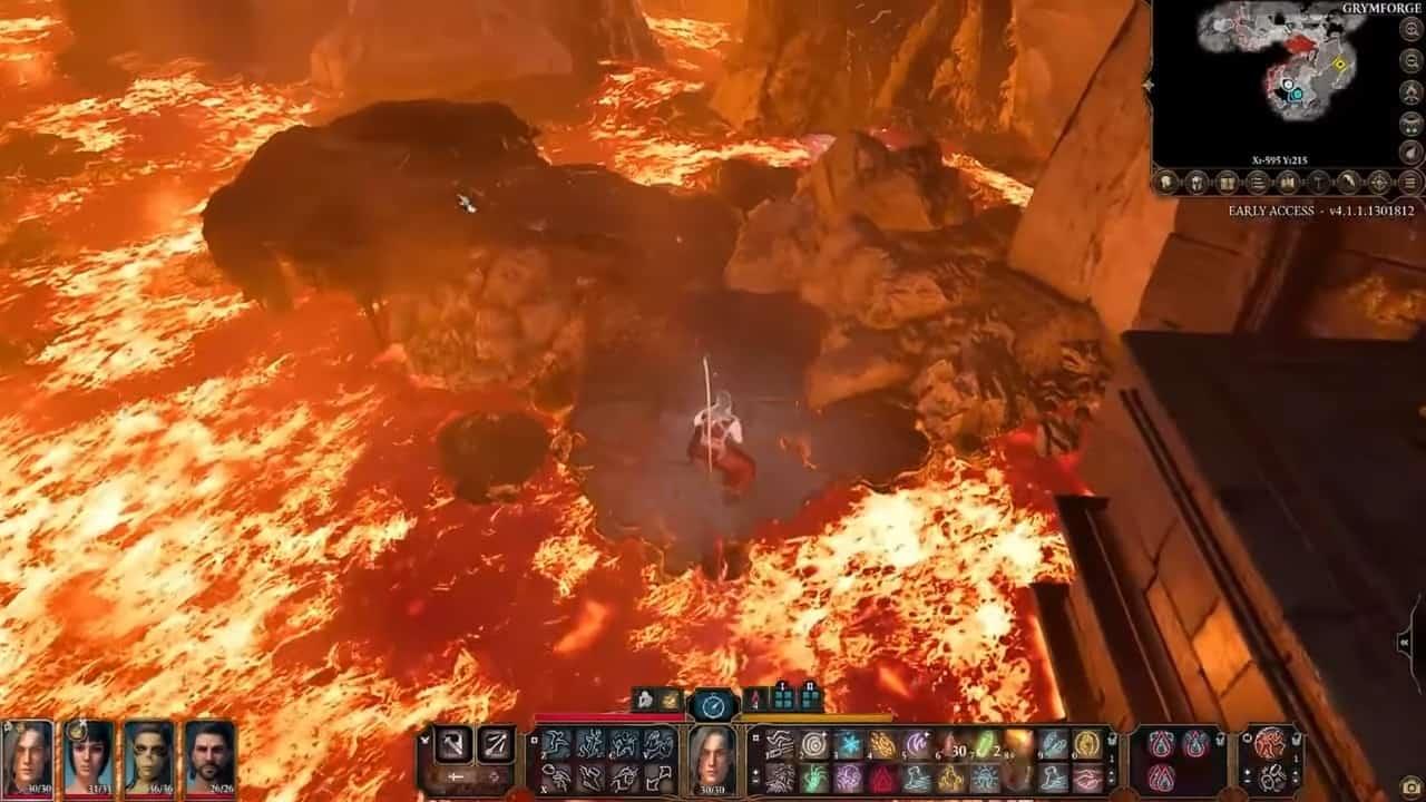 Wenn Sie die Karte beobachten, können Sie sich dafür entscheiden, Ihre Gruppenmitglieder zu verlassen und zur linken Seite von Underdark Ancient Forge zu gehen. Sie werden ein von Lava umgebenes Gebiet vorfinden und müssen Ihren Weg finden, indem Sie auf die beabstandeten Felsen springen.