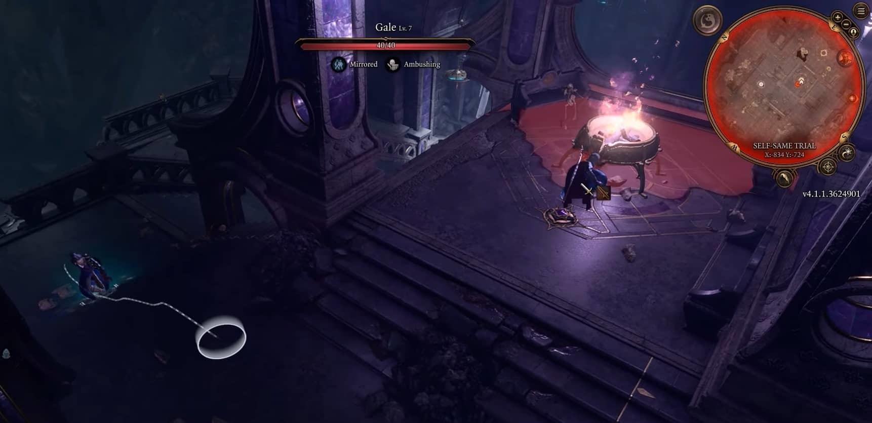 Sobald Sie den Self-Same-Prozess in BG3 gestartet und den Raum betreten haben und nur ein Gruppenmitglied ausgewählt haben, finden Sie dessen Gegenstück im oberen Treppenbereich. Du kannst gehen und ihn töten.