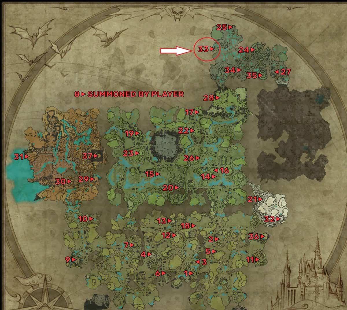 Verwenden Sie die folgenden Links, um zu einem bestimmten Abschnitt der Seite zu springen: Sie finden Matka die Fluchweberin in ihrem Versteck namens Nest of the Curse Weaver in der Cursed Forest-Region von Vandoran. Als Non-Roaming-Boss kannst du hier jederzeit gegen Matka kämpfen – es wird jedoch empfohlen, nachts gegen sie zu kämpfen, da ihr Nest nicht viel Sonnenschutz bietet.